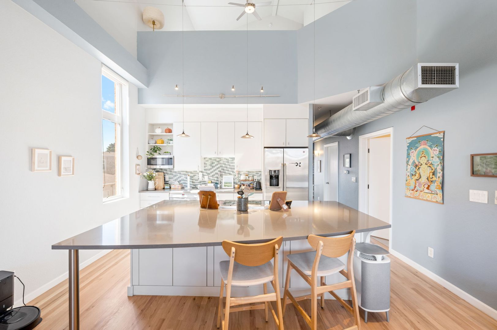 Furnished, corner unit 2-bedroom in Lowry with 2 garage parking spots! The main floor offers open, easy living with 20+ foot tall vaulted ceilings, tons of natural sunlight, a bedroom, bathroom, and bonus flex space perfect for an office setup. The 2nd floor is a loft-style suite with walk-in closet and 5-piece bathroom. Highlights include a massive kitchen island, premium wood furniture, central cooling, Samsung smart washer and dryer, and a large balcony off the flex room for outdoor living. Steps to Lowry Town Center with grocery stores, cafes, restaurants, and shops. Walking distance to Lowry Sports Complex Park for access to trails, greenspace, and parks. Other nearby amenities include Montclair Recreation Center, Lowry Beer Garden, Wings Over the Rockies Air & Space Museum, Big Bear Ice Arena, and more. Just about a 15 minute drive to downtown Denver. HOA dues included. HOA covers water, sewer, trash, and recycling.