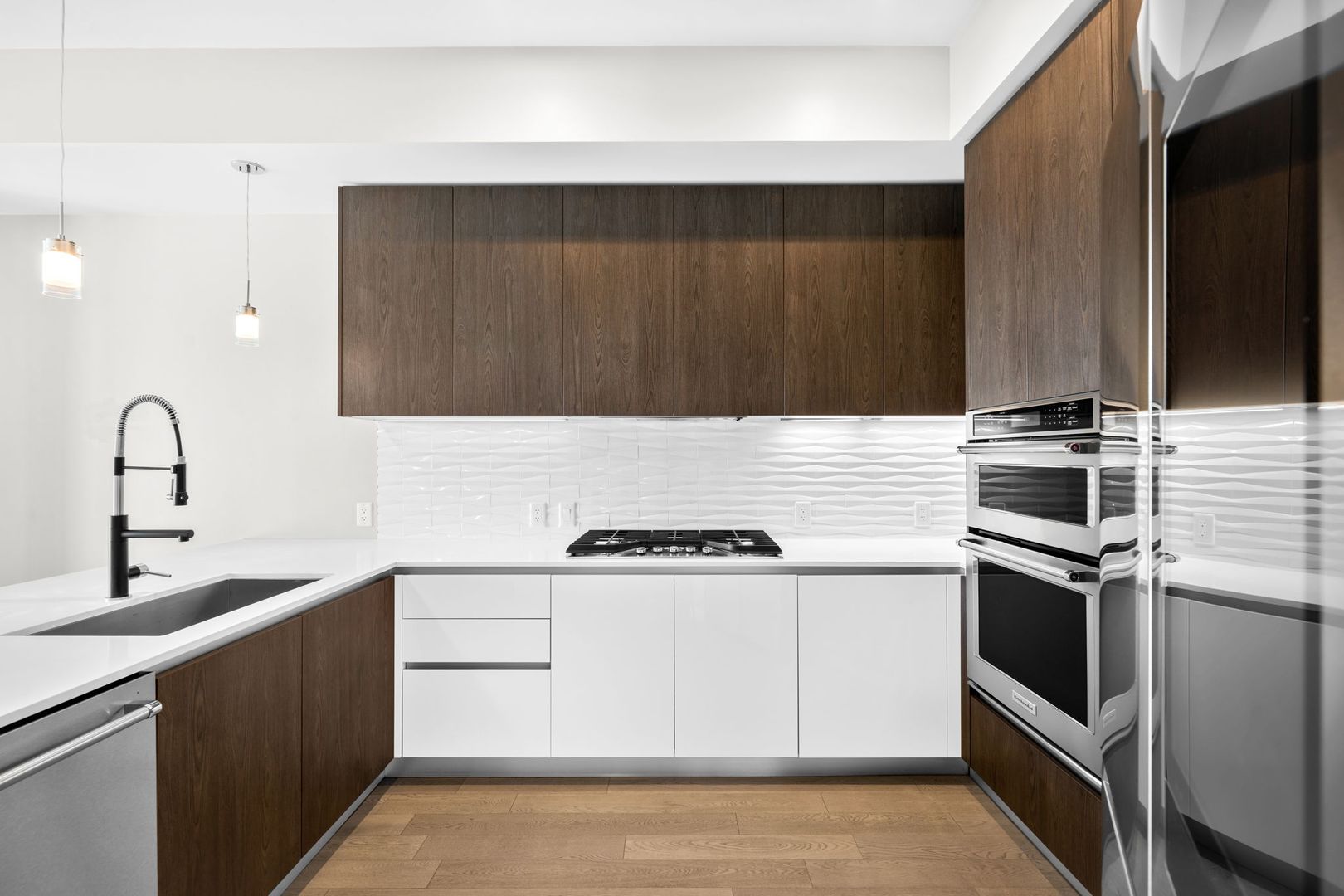 6th floor condo in the Lakehouse. Features include an open layout with floor-to-ceiling windows, a bonus 1/2 bathroom, quartz countertops, KitchenAid appliances including a Samsung smart fridge and a gas cooktop, a spa-like primary bathroom with attached walk-in closet, and a top-of-the-line Samsung washer and dryer. There is a flex space that makes a great spot for an office setup, guest room, or entertainment den. Enjoy a private covered balcony, a dedicated storage unit, and an assigned parking spot in the community garage.